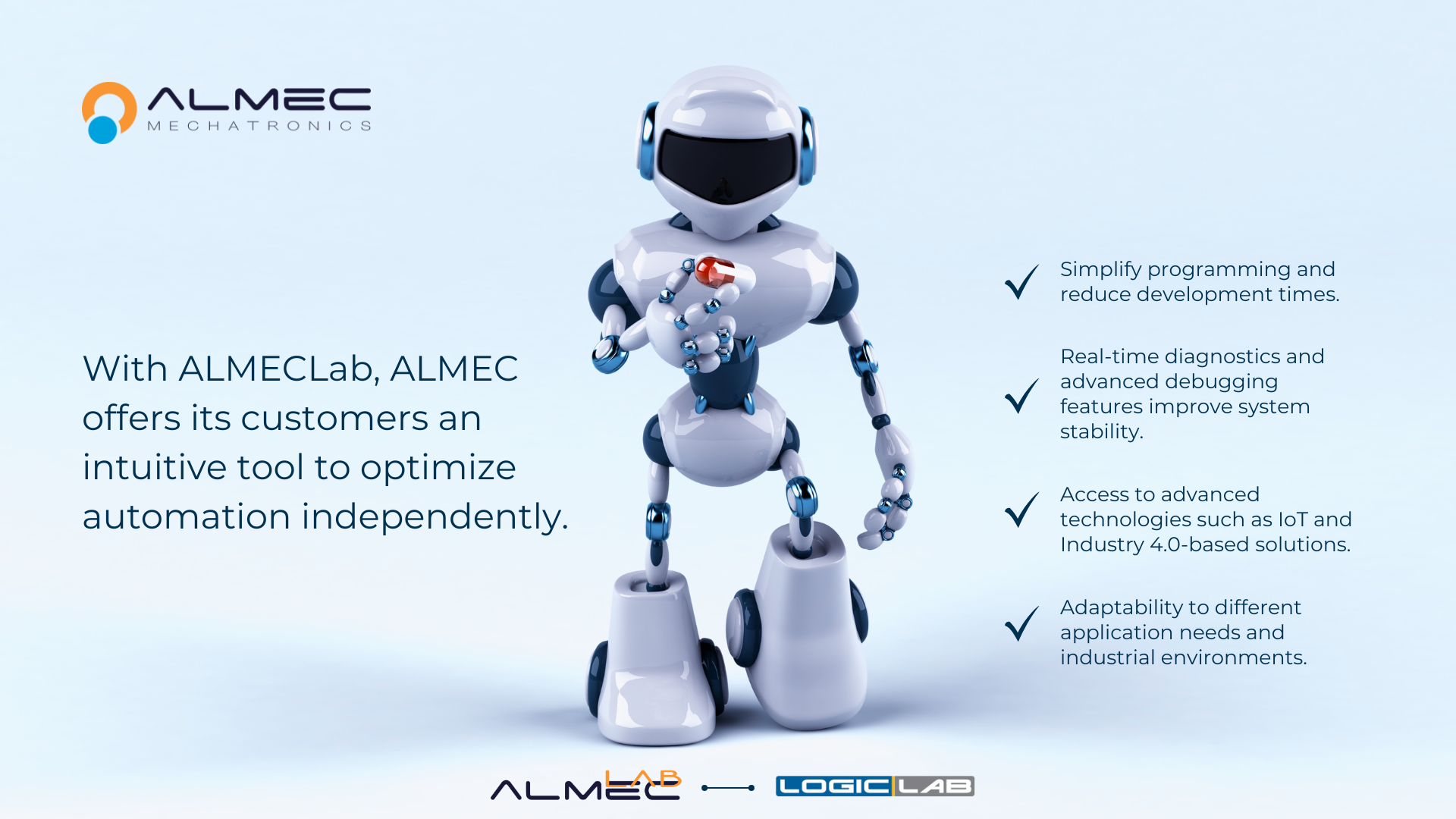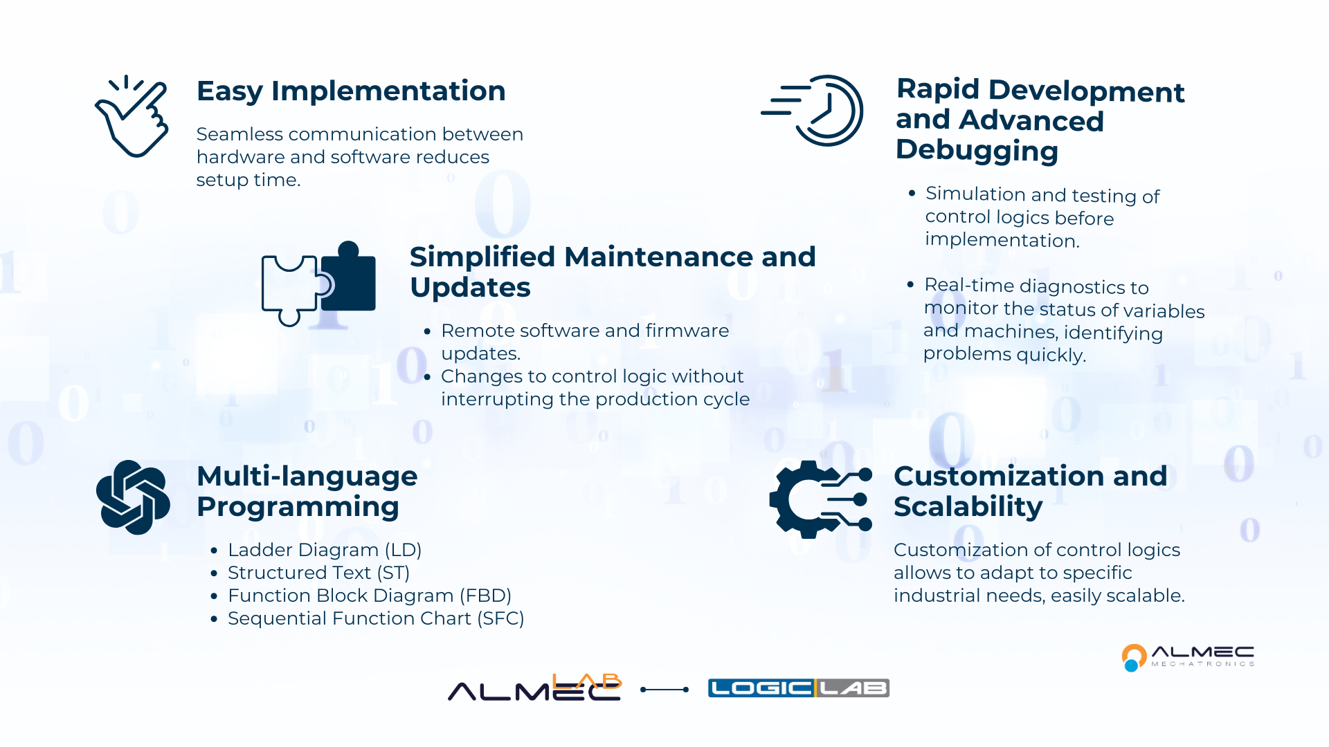 ALMEClab is ALMEC's software programming platform for electronic control units and PLCs, compliant with the IEC 61131-3 standard. It supports 5 different languages (ST, LD, IL, FBD, SFC) for textual and graphical programming of ALMEC products.